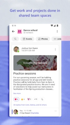 "Microsoft Teams" کے ذریعے اپنے منصوبوں اور مقاصد کو باہمی تعاون سے حاصل کریں۔ اپنی چیٹس میں تصاویر اور ویڈیوز آسانی سے شیئر کریں تاکہ اہم لمحات کو تیزی سے بانٹا جا سکے۔ کلاؤڈ اسٹوریج کے ذریعے مشترکہ دستاویزات اور فائلوں تک رسائی حاصل کریں، چاہے آپ کہیں بھی ہوں۔ کمیونٹیز میں مشترکہ مواد – جیسے ایونٹس، تصاویر، لنکس اور فائلیں – کو منظم انداز میں رکھیں تاکہ آپ کو تلاش میں وقت ضائع نہ کرنا پڑے۔ اسکرین شیئرنگ، وائٹ بورڈ، یا ورچوئل بریک آؤٹ رومز کا استعمال کرکے اپنی میٹنگز کو مزید موثر بنائیں۔ معلومات تک رسائی کا بہترین انتظام کریں تاکہ یہ یقینی بنایا جا سکے کہ صرف صحیح افراد کو ہی مناسب معلومات تک رسائی حاصل ہو، حتیٰ کہ جب منصوبوں میں نئے لوگ شامل ہوں یا کوئی چھوڑ کر جائے۔ ٹاسک لسٹس کے ساتھ اپنے منصوبوں کو منظم رکھیں؛ کام تفویض کریں، ڈیڈ لائنز مقرر کریں، اور مکمل شدہ اشیاء کو نشان زد کریں تاکہ ہر کوئی ایک ہی صفحے پر رہے۔